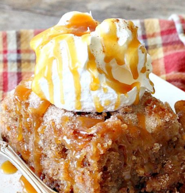 - If favored, serve with ice cream, whipped topping and drizzle caramel sauce over top.